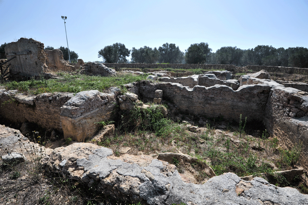Fonti storiche attestano la totale distruzione del sito nel periodo medievale (1157) per mano di Guglielmo di Sicilia, detto il Malo; dopo quella data la città fu abbandonata, declassata a feudo, probabilmente una fattoria, che il Conte Tancredi concesse all’Ordine Benedettino di Lecce nel 1182, periodo di cui resta traccia in una piccola chiesa dedicata a Santo Stefano, in corrispondenza delle mura dell’impianto termale originario, assieme ai piccoli sepolcri scoperti nella stessa zona. Dal 1500 l’area disabitata fu destinata definitivamente a terreno agricolo dove veglia ancora la Pajara in pietra a secco, tipica abitazione contadina salentina.