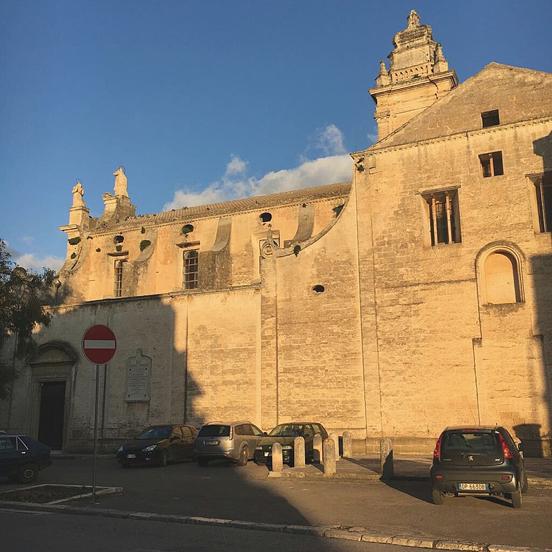 Il Santuario della Madonna della Croce è una pregevolissima chiesa della città di Francavilla Fontana, affascinante per le linee tipiche dello stile barocco e la stupefacente architettura interna. Il primo contatto che potrai avere con la struttura riguarderà la facciata, ossia la parte costruttiva più recente della chiesa risalente al 1910. Spostando lo sguardo poco al di sopra, potrai osservare il bellissimo campanile settecentesco originariamente aderente al gusto barocco a cui la facciata moderna si è dovuta necessariamente adattare per un risultato più armonico del complesso. Tre statue decorano la parte più alta della facciata, stimolandoti, per la loro presenza, a guardare con più attenzione alcuni elementi visibili che li accompagnano: in particolare la Vergine, posizionata al centro, che regge in mano una croce e a cui si deve per tale dettaglio l’intitolazione della chiesa. Passando all’interno, la sobrietà specifica della facciata viene confermata attraversando la porta d’ingresso. La pulizia raffinata delle strutture architettoniche degli archi caratterizza lo spazio e lo divide in tre navate.