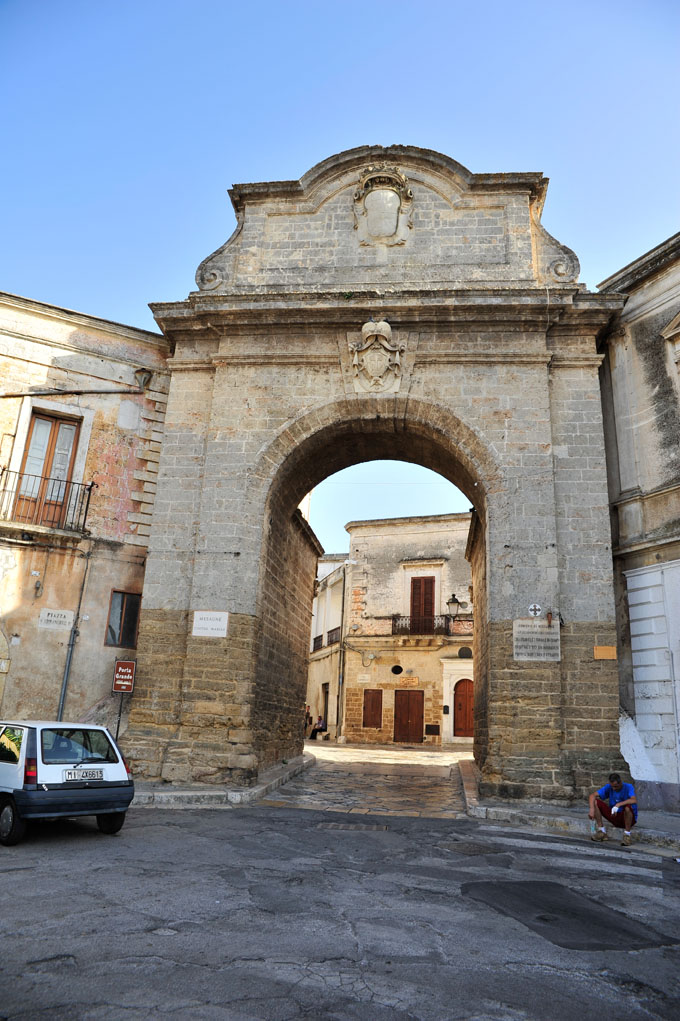 Meritano una visita il castello normanno-svevo e la vicina Piazza Orsini del Balzo, una bellissima piazza cinquecentesca, dove si trovano il Palazzo Cavaliere, che ospita il museo diocesiano, e la magnifica chiesa barocca di Sant'Anna. Attraverso un caratteristico e stretto passaggio, si raggiunge il sito archeologico di Vico Quercia, che ospita una rilevante necropoli messapica. Qui si trova la splendida Chiesa Matrice e dall'altra parte della Piazza del Sedile si accede alla biblioteca comunale, situata nel palazzo dell'Orologio. Proseguendo tra i vicoli e le piazzette del centro storico, si arriva alla Porta Piccola, che conserva solo il nome, e rappresenta l'uscita dal nucleo antico. Qui si trova l'ex convento dei Celestini, risalente al XVI secolo, che include la chiesa barocca di Santa Maria.