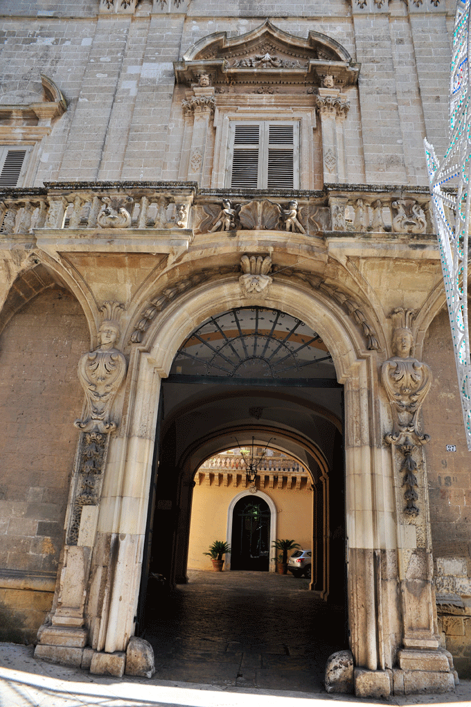 Among the aristocratic buildings in the town of Francavilla Fontana, you can admire Palazzo Giannuzzi - Bottari - Carissimo, which was owned by several Francavilla families since 1727. You can stop and admire the façade, which is remarkable for the fusion of late Renaissance decorative elements that enliven the front of the buildings with extreme elegance. Perhaps you will be more fascinated by the robust triangular corbels that support the long horizontal balcony of the façade.