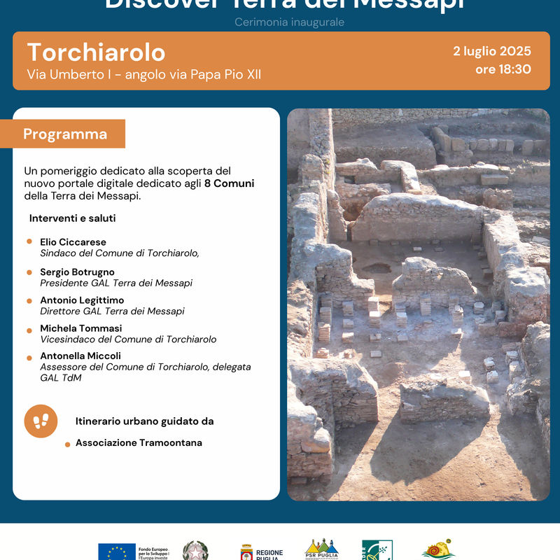 Martedì 2 luglio alle 18:30, ci vediamo a Torchiarolo per l’inaugurazione del quarto Access Point - Discover Terra dei Messapi.