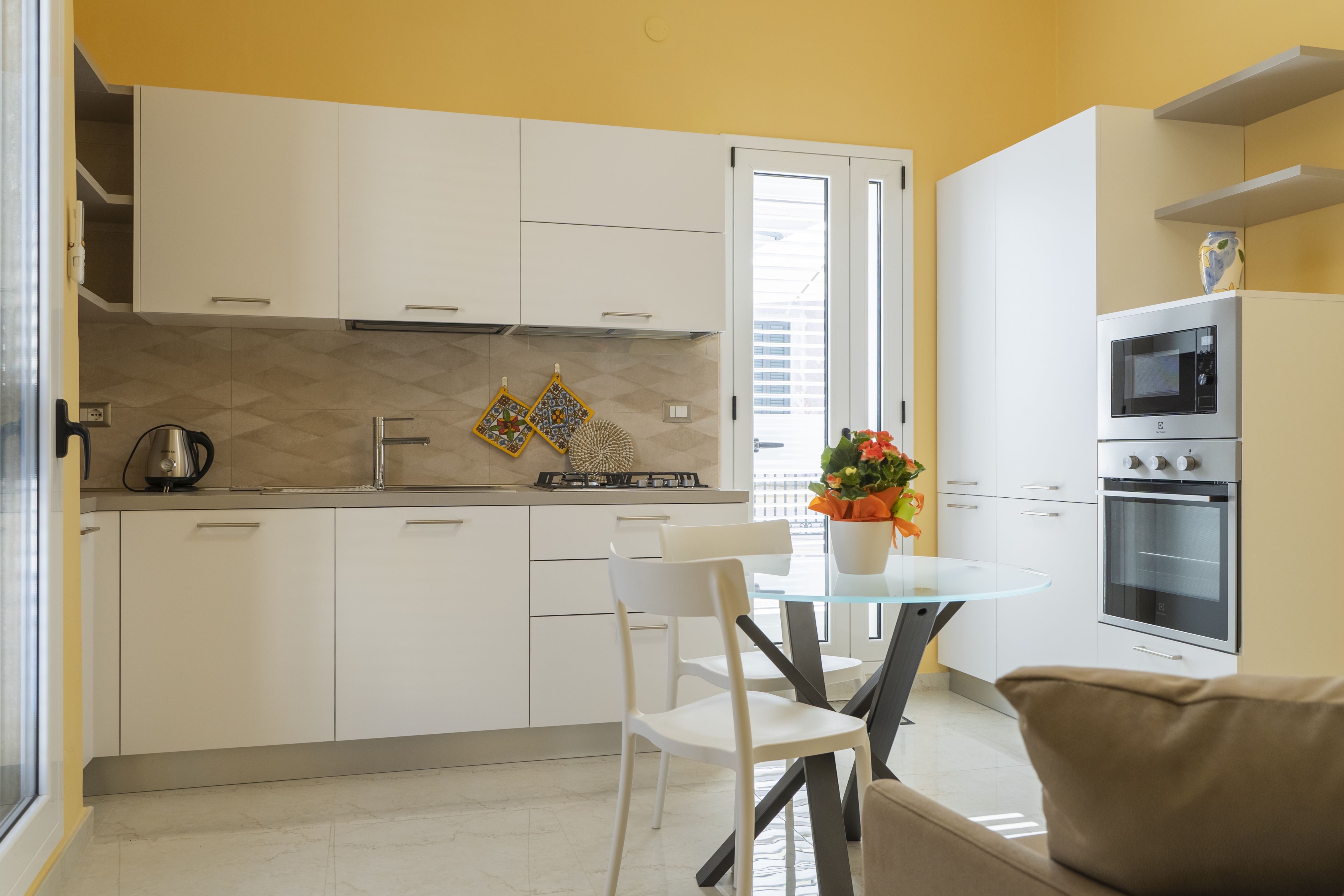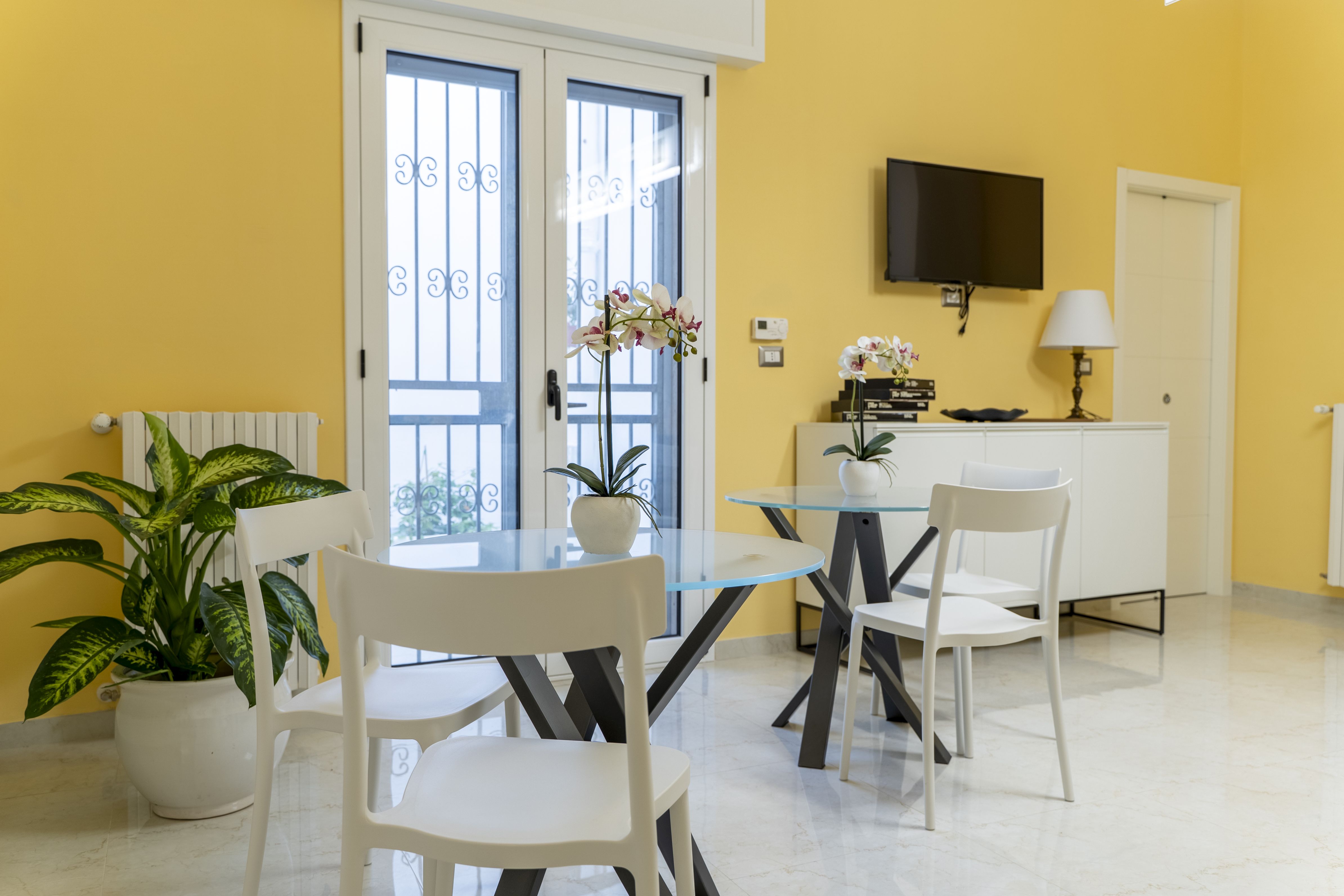 La struttura è composta da un ampio appartamento a piano terra con due camere matrimoniali con bagno privato, comune sala living e cucina attrezzata a totale utilizzo degli ospiti insieme ad una lavanderia (lavatrice e asciugatrice). Al primo piano dispone di un grazioso e autonomo appartamentino con camera matrimoniale, bagno, zona living/cucina ed un ampio terrazzo attrezzato.